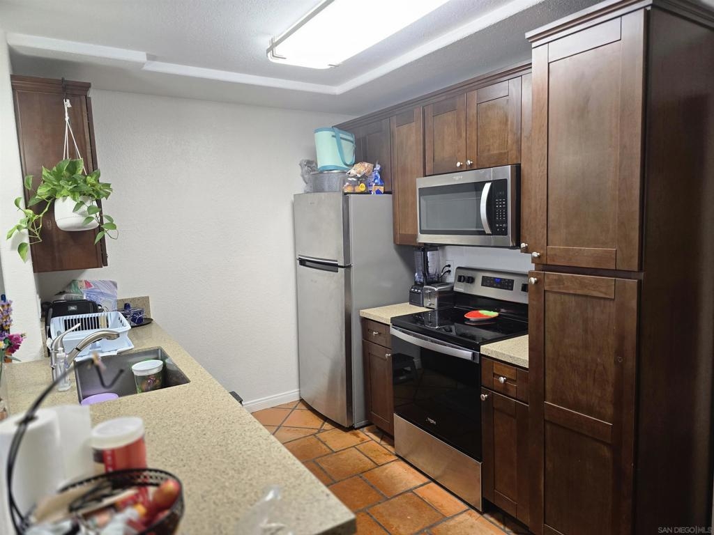 Value range $275,000-$300,000. Welcome to this nicely upgraded 1-bedroom, 1-bath unit located in a gated community. Step inside to find tile flooring in the entry and kitchen, complemented by upgraded wood laminate flooring in the bedroom. The kitchen features granite countertops, a coordinating granite breakfast bar, upgraded self-closing cabinets, and a built-in dishwasher. The dining area includes a ceiling fan, and the spacious bedroom offers a walk-in closet. The bathroom has also been tastefully upgraded with granite countertops and modern cabinetry. Dual-pane windows throughout provide energy efficiency and a quieter indoor setting. One assigned parking space is included. This is a great opportunity for investors—current tenants are paying $1,995/month and would love to stay if possible, offering immediate rental income. The unit is part of a small, well-maintained complex of only seven units, creating a more private, community-oriented environment. Located in the vibrant City Heights neighborhood, you’ll enjoy proximity to Clark Middle School, the City Heights Center, YMCA, major freeways including the 805 and 15, and San Diego State University just a short drive away.