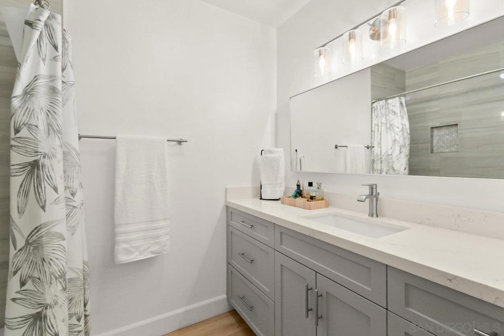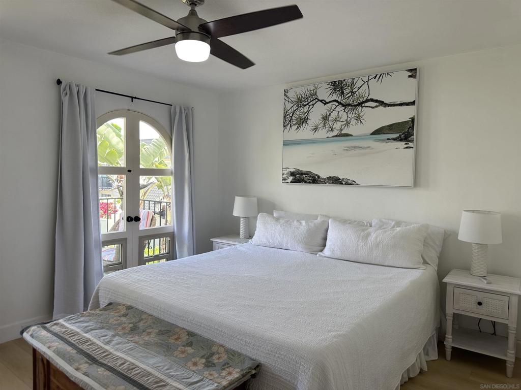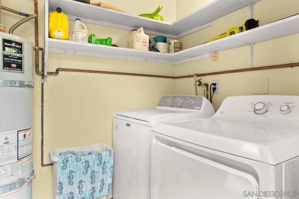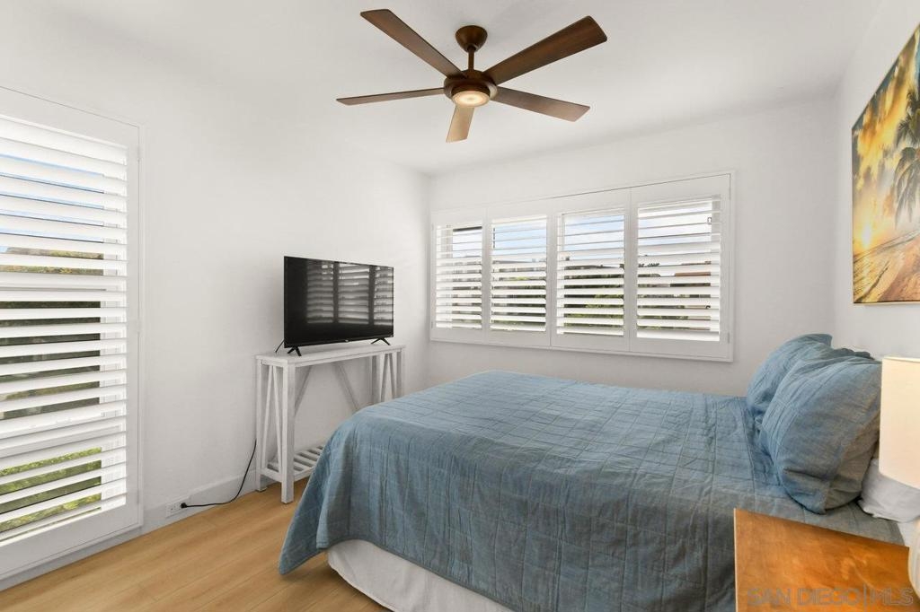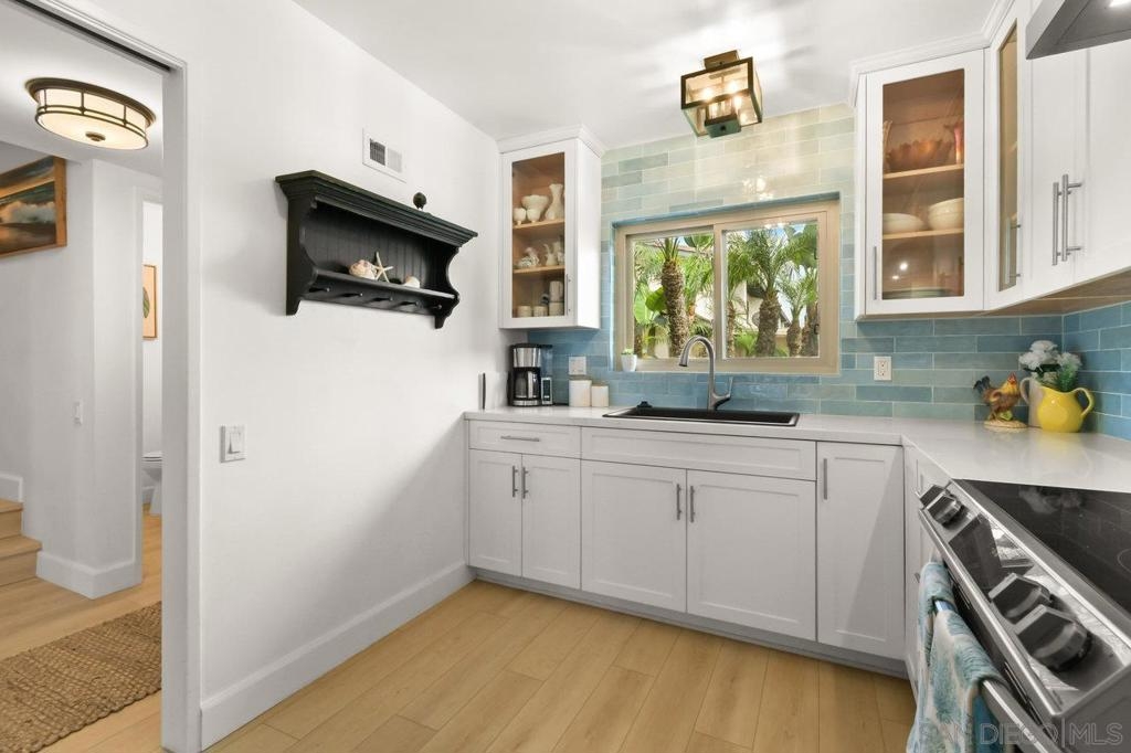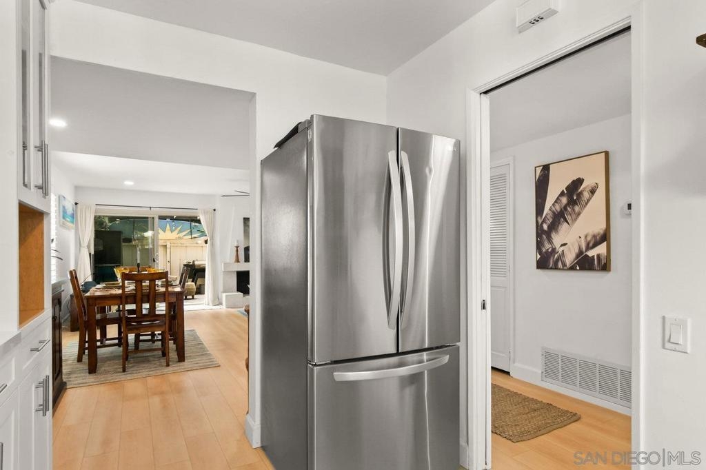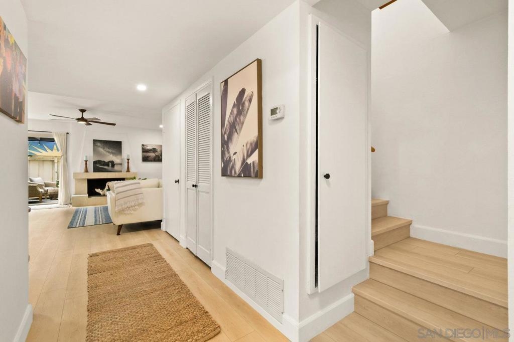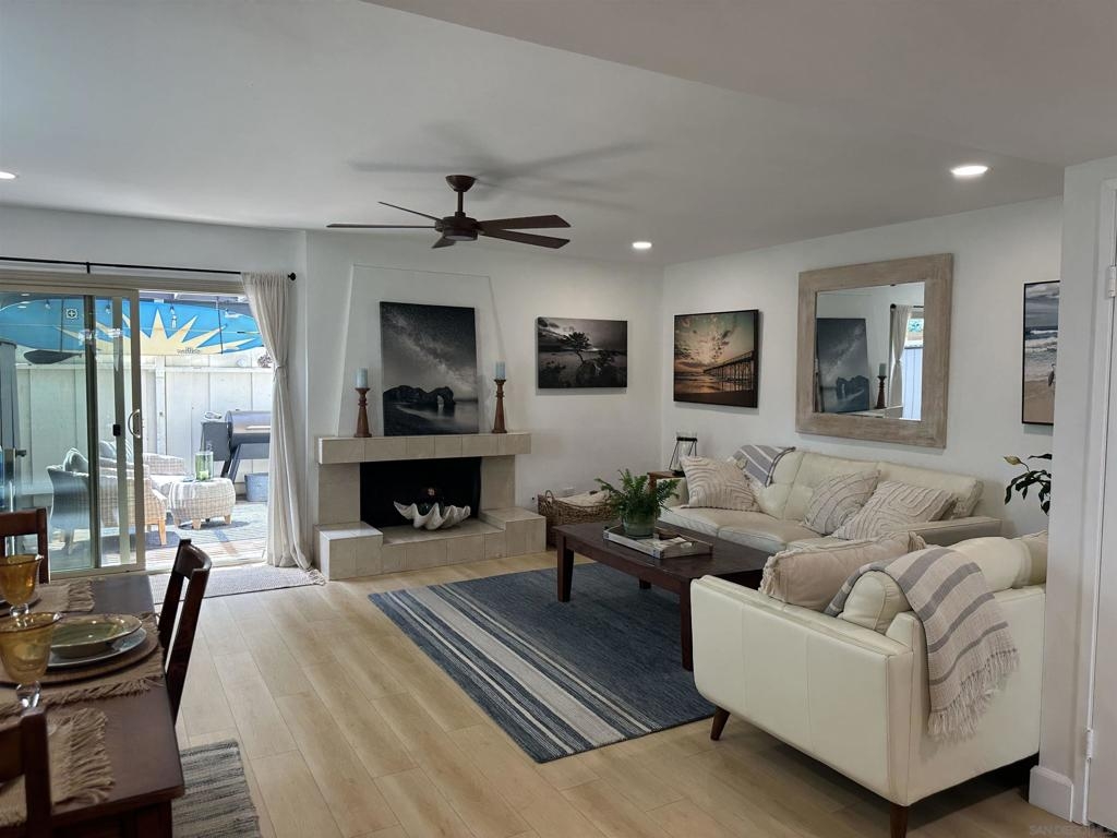 Totally updated 3 bedroom end unit townhome in Point Loma. Solid surface countertops, custom cabinets and quality appliances in the kitchen. Both bathrooms are updated with attractive finishes. Engineered flooring, baseboards and custom plantation shutters through out. Living room has fireplace and sliding glass doors to large tiled and covered patio area. Separate laundry room with water heater, York heating system, and 2 covered carport parking spaces.