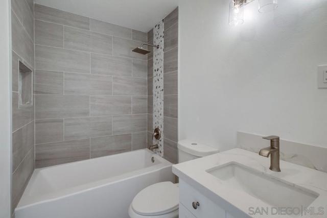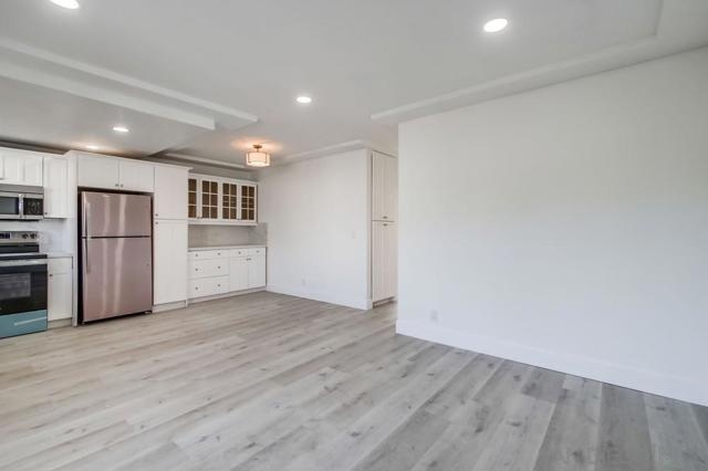 VA-approved complex! Ready for you to move in! This newly remodeled top-floor unit features vinyl wood flooring throughout, new kitchen cabinets, quartz countertops, stainless steel appliances, newer windows, recessed lighting, upgraded bathrooms with tiled showers, and ceiling fans. It includes a one-car garage along with additional parking. The location is centrally situated with easy freeway access, just 15 minutes from downtown, SDSU, USD, and the beaches.