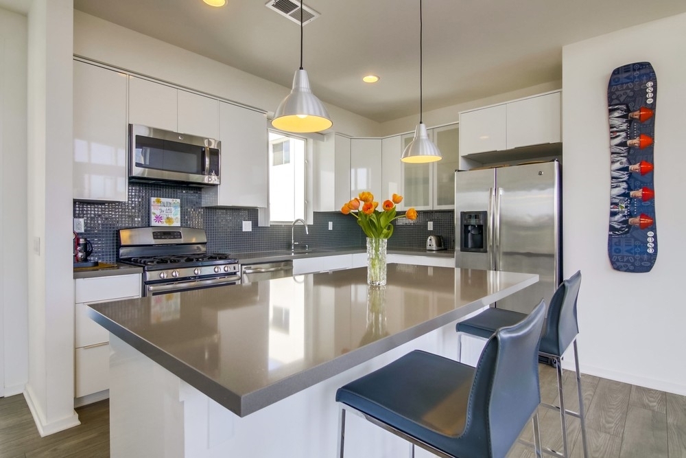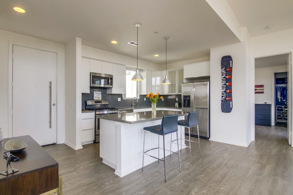 Located in OB/Point Loma, this contemporary & upscale single level condo is close to beaches & walkable to shops & restaurants. Unique layout, one of a kind property that features 2 large decks & panoramic views. The chic kitchen design showcases gloss white cabinets, qrtz counter top, full-height glass tile backsplash & SS appliances. AC, washer/dryer, solar panels (owned), tankless WH & low HOA's. Popular laminate flooring, linen finish tile & open design make this home ready for the next lucky buyer! Property comes with one assigned parking space and a storage. The complex also have 2 parking spaces in the back.. Neighborhoods: Point Loma Heights Equipment: Dryer, Range/Oven, Washer Other Fees: 0 Sewer: Sewer Connected Topography: LL