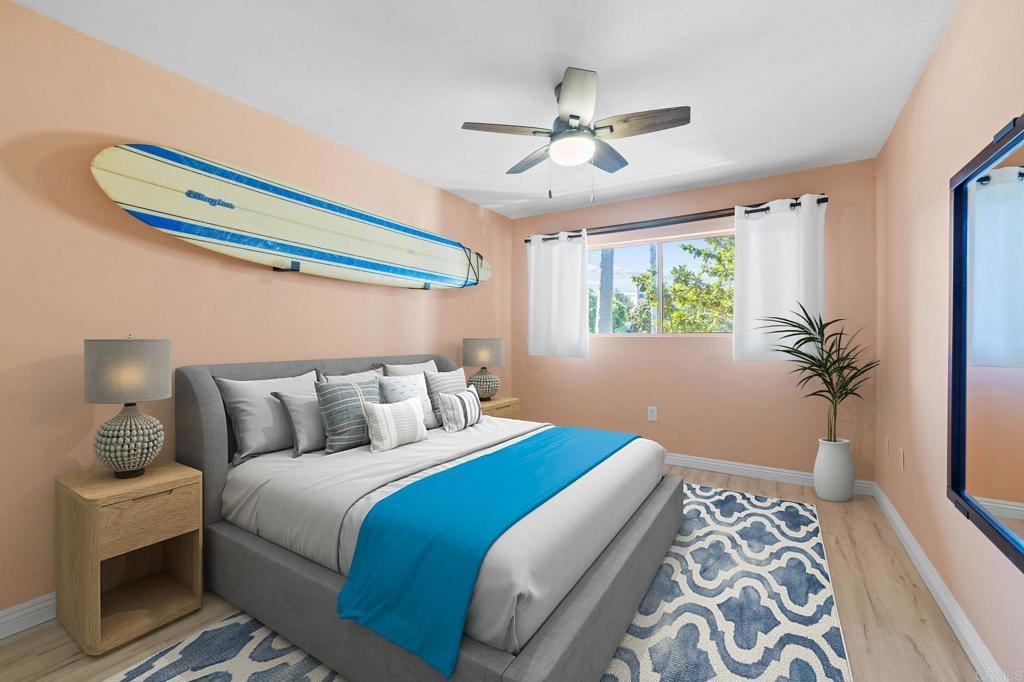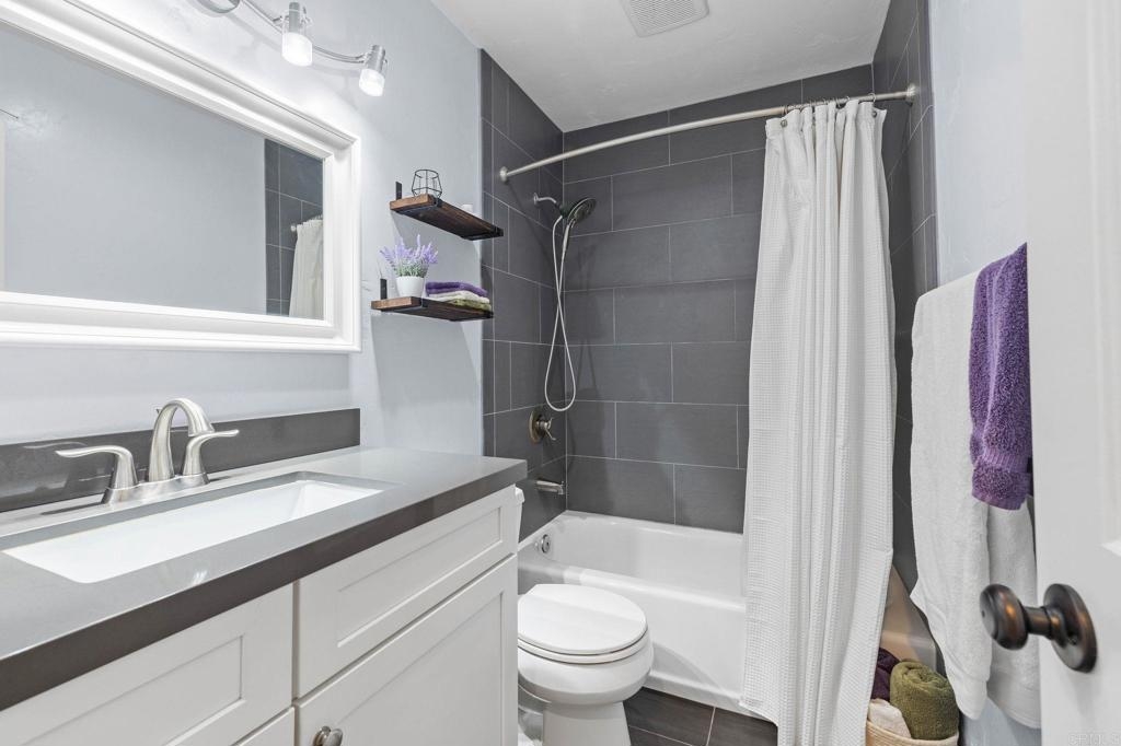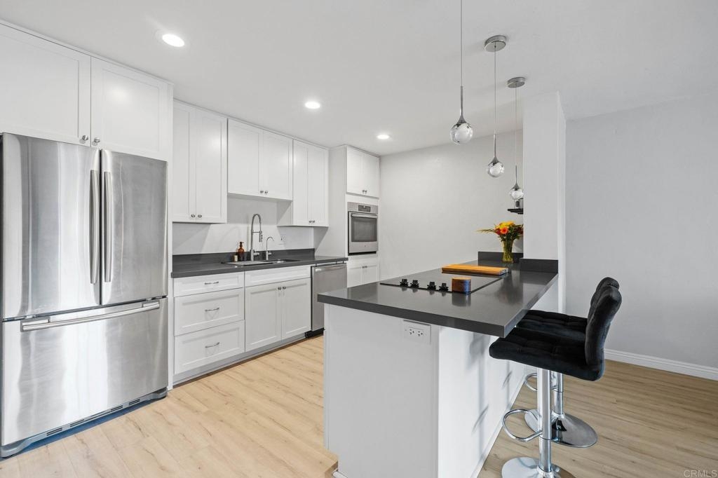 FHA and VA Approved! Don't miss this immaculate 2 bed, 2 bath condo minutes from the beach, with parking, a sizeable master suite and an extra-large balcony. This stunning fully renovated condo showcases high end finishes with a calm, coastal vibe. All newer appliances are included with the sale. The condo has been renovated with custom vanities, high grade tile, waterproof luxury vinyl flooring throughout, and quartz countertops. Your open kitchen and living room are complimented by a large slider onto your balcony, providing a perfect transition between indoor and outdoor living space with tons of natural light. The large primary suite allows for additional bedroom furniture, has 2 full closets, and a custom tiled shower. Everything is renovated in this condo down to the studs, including all plumbing and electrical. Reserved parking spot is feet from the door. Just minutes walk to the OB dog park and very close to the OB pier, beach, pickleball courts, restaurants, the airport, and highway access. Dog friendly! A must see in person!