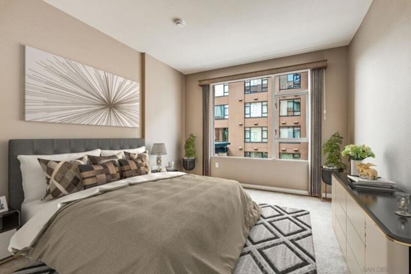 Perfect downtown condo in the Trellis Building located in the highly desired area, walking distance to Convention center, in the heart of Gaslamp Quarter, close to Petco Park, restaurants, and nightlife. Experience the best of downtown in this spacious 1-bedroom + Large Den/Optional 2nd bedroom, 1-bath. This condo boasts an open floorplan with 9th ceilings with balcony look out.. Enjoy city view in every room. This residence features nearly 30 feet of linear floor to ceiling windows. The gourmet kitchen includes beautiful granite counters, stained maple cabinets, stainless steel appliances.