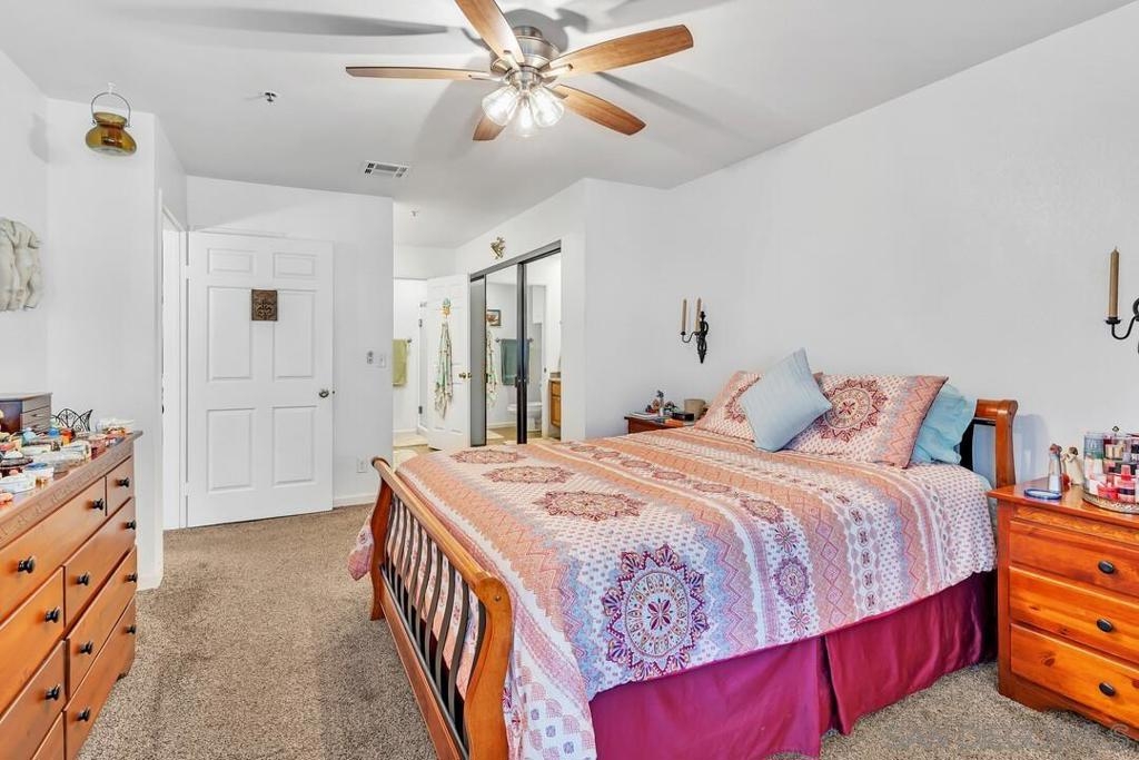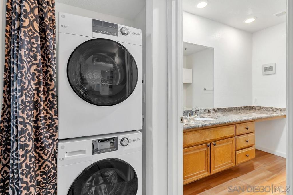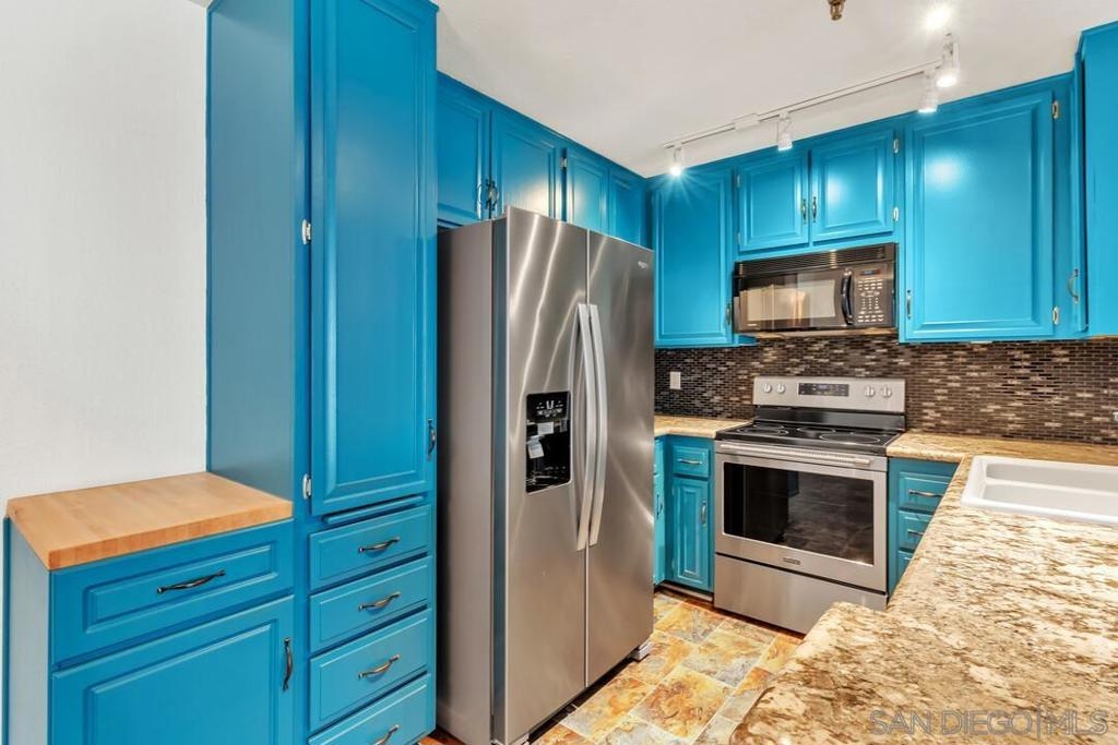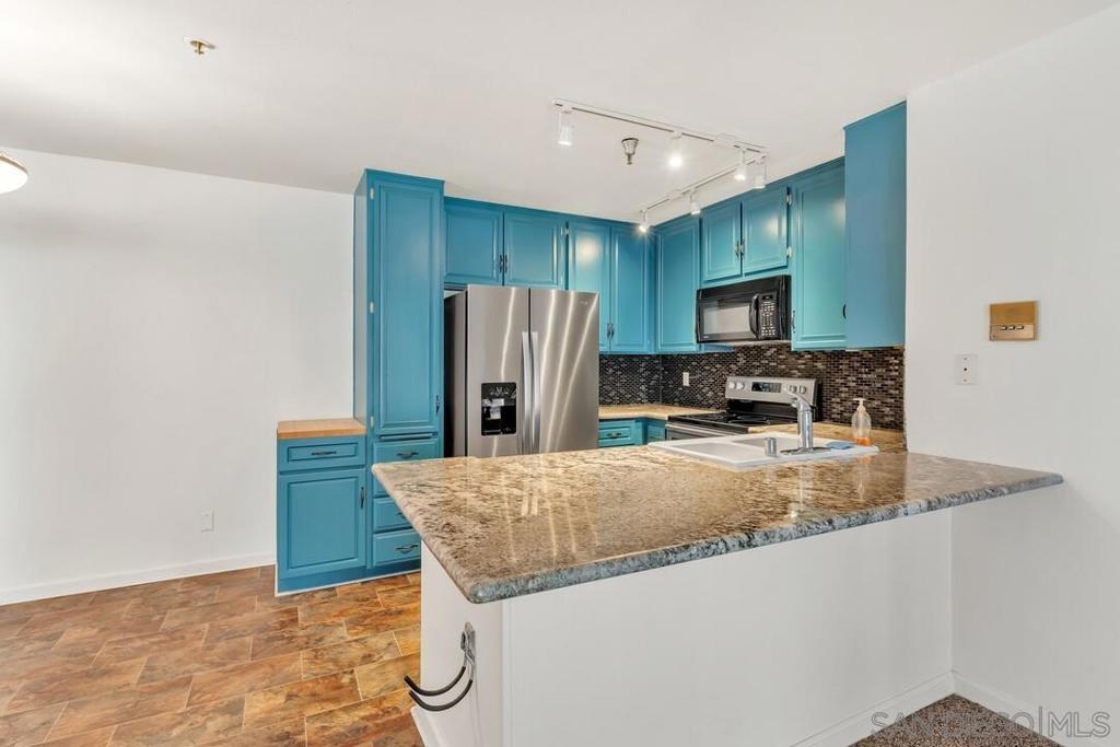 Look no further. This 3rd floor, courtyard facing unit at Presidio Place offers a perfect blend of modern upgrades, convenience and amenities to fit your lifestyle. The unit is located close to the elevators and to the storage unit that the new owner will get to use. In the kitchen you’ll find a vibrant shade of teal on the cabinets, granite counter tops, a new refrigerator, new stove and a new dishwasher. The layout flows perfectly with a split primary bedroom layout. At each end of the unit, the bedroom has new dual pane windows and quality PVC shutters, so you can open up and let the breeze in or glimpse out at the garden. There are a new stackable washer and dryer in the unit, and the second bathroom has been recently remodeled. The kitchen opens to the living which has a new dual pane sliding glass door and gas fireplace. Presidio Place is a community full of amenities such as tennis courts, pickleball courts, pools, hot tubs, a basketball hoop, a ping pong table and a rec center. There are numerous ponds throughout the community which add to the resort feel. The property is centrally located, just minutes from the 163N, the trolley station, Fashion Valley mall, USD, Point Loma, Mission Bay and more. Residents can, for an additional fee, utilize the community garden to grow fruits and vegetables. Parking is one assigned spot in the parking garage, and one car may also park in any open guest space.