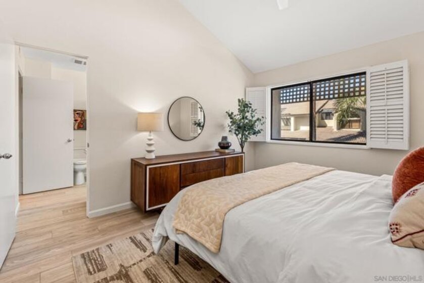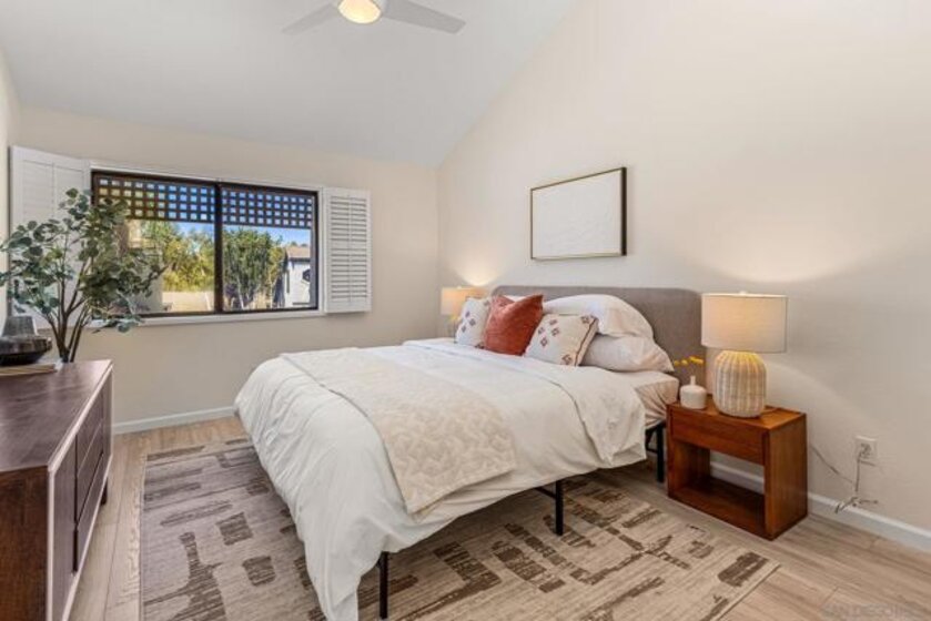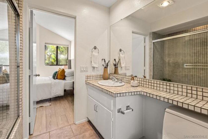 We’re ready to welcome you home! Step into the privacy and comfort of a single-family feel with the convenience of an end-unit attached home. Imagine your own spacious tropical backyard retreat—perfect for entertaining or simply unwinding in total privacy. With only one shared wall, sunlight floods the customized open floor plan, highlighting the updated flooring, fresh paint, and modern finishes throughout. This thoughtfully designed home features 3 bedrooms and 3 en suite-bathrooms upstairs, plus a guest half bath downstairs. Recent upgrades include newer appliances, a newer HVAC system, large capacity tankless water heater, and a whole-house water filtration system—giving you peace of mind and move-in ease. And when it’s time to relax or play, you’re just a short stroll from the sparkling community pool. Prime Location, Perfect Lifestyle! Nestled just steps from the USD campus and a short drive to Mission Bay; University Canyon West combines convenience with natural beauty. VA Approved.