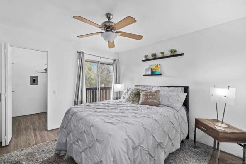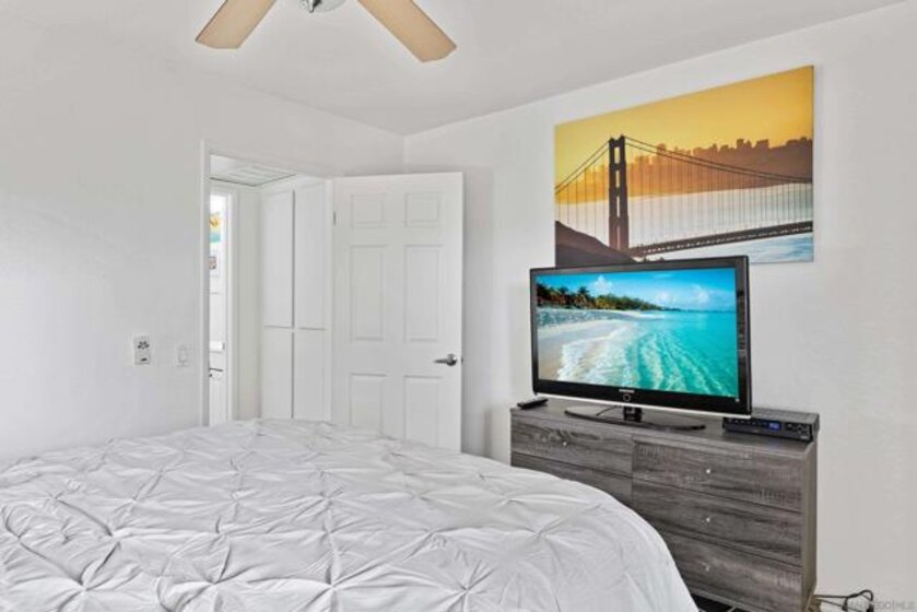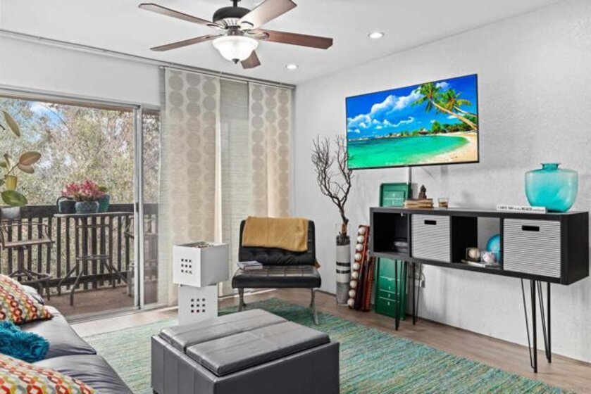 Welcome to this beautiful top-floor unit at the desirable The Bluffs at Fashion Valley. This light & bright unit offers special features such as an open floor plan, extra-large balcony with tree views, a brand new AC/heating, and laminate flooring throughout, ceiling fans, and custom blinds in the living room. The Bluffs offer a prime central location in San Diego, just minutes from the beach, bay, Downtown, San Diego International Airport, parks, and all major city attractions. Experience convenience and Southern California living at its finest! Welcome to this beautiful top-floor unit at the desirable The Bluffs at Fashion Valley. This light & bright unit offers special features such as an open floor plan, an extra-large balcony with tree views, brand-new AC/heating, laminate flooring throughout, ceiling fans, and custom blinds in the living room. The Bluffs offer a prime central location in San Diego, just minutes from the beach, bay, Downtown, San Diego International Airport, parks, and all major city attractions. Experience convenience and Southern California living at its finest!