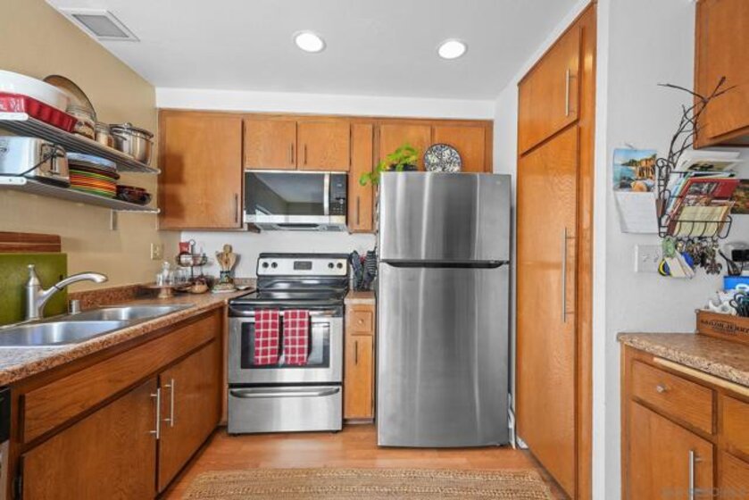 Welcome to your hideaway at North Rim—a 2-bedroom, 1-bath tri-level townhouse. Inside, the open floorplan makes everything feel bright and connected, while a big private patio with hillside views gives you the perfect spot to sip coffee, scroll your phone, or pretend you’re into birdwatching. The remodeled bathroom means one less project on your to-do list, and the main bedroom even comes with its own balcony. Down in the attached one-car garage, you’ll find laundry and storage, so no more going to the laundromat or wondering where to stash your paddleboard. As for the community, North Rim comes with all the resort-style perks: a huge pool and spa area for lounging, a clubhouse for gathering, and tennis courts for when you feel athletic. Best part? This community is tucked away so well, you’ve probably driven right by and never known it was there—it's like your own little urban secret.