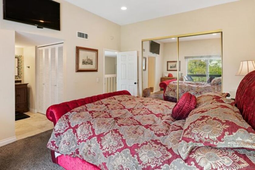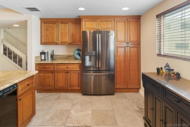 Highly coveted end-unit in Vista Del Cerro! Spacious living room with soaring ceilings, gas fireplace, and access to a private patio. Gourmet kitchen with granite counters, stainless steel appliances including an electrolux double oven, and breakfast bar. Upstairs features a primary suite with tall ceilings, ample closets, and a private balcony, plus two additional bedrooms. New floors and dual pane windows. Gated front patio and attached two-car garage. Community offers park-like grounds, pool, and clubhouse. Walk to highly rated Dailard Elementary and Patrick Henry High School. A true must-see!