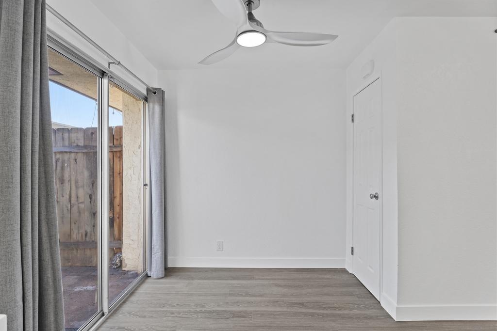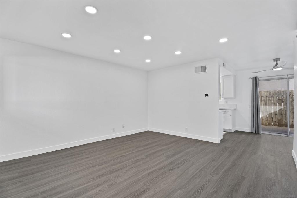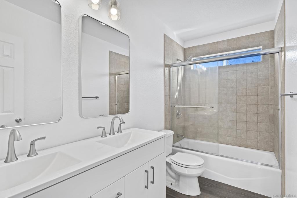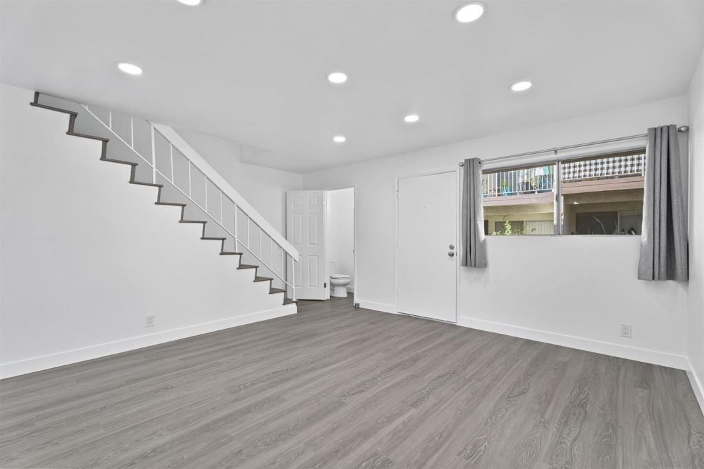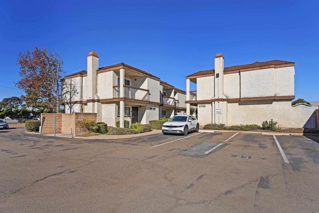 Discover modern San Diego living in this stunning, completely remodeled 2-bedroom, 1.5-bath condo, blending comfort with contemporary style. This property has been meticulously transformed to offer a fresh, turnkey experience. Step inside to find seamless, new laminate wood flooring that flows throughout the home, complemented by fresh, designer-selected paint. The heart of the home, the kitchen, is a chef's delight, boasting sleek quartz countertops and a full suite of stainless steel appliances, including a refrigerator, sink, stove, microwave, and dishwasher. Upgraded bathrooms provide a spa-like retreat, with the primary bath featuring a luxurious double sink vanity. The primary bedroom is a true sanctuary with a large closet and its own private patio, perfect for enjoying quiet mornings. Convenience is key with an upstairs laundry closet ready for a stack washer/dryer. Outdoor California living is effortless with a private, fenced patio off the main living area. The condo also includes one assigned parking space and access to guest parking. Perfectly situated near SDSU and a variety of shopping options, this home offers both a vibrant location and a peaceful haven. Don't miss this exceptional opportunity for stylish, low-maintenance San Diego living.