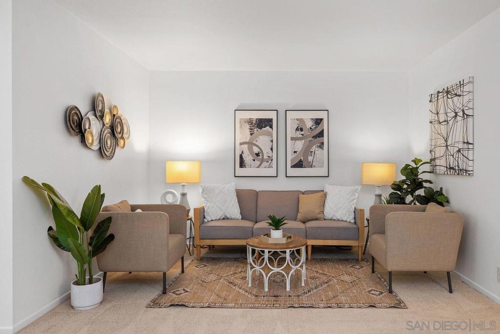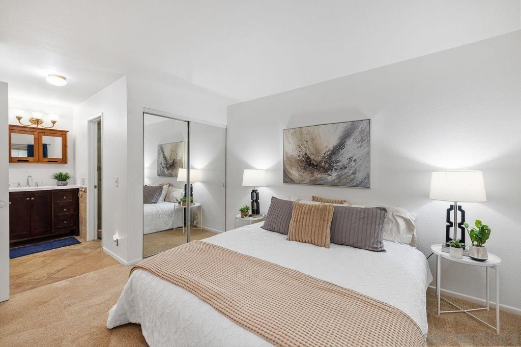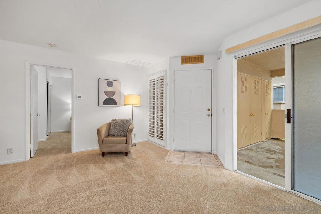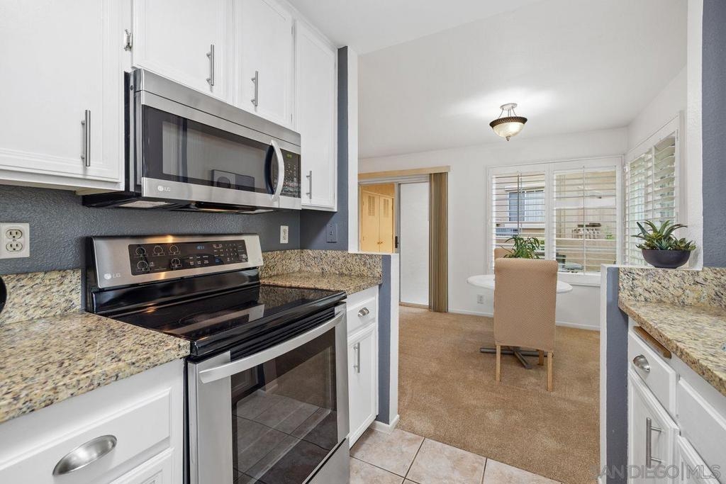 Great move in ready condo in Mira Mesa. Freshly painted with new carpet, this home is ready for all buyers. Updated kitchen with granite counters and stainless appliances. Completely remodeled bathroom with custom shower. Dual pane windows. Shutters in the living room and dining room. Oversized patio is a great place to relax and entertain guests. In unit laundry. New water heater and HVAC system. Well kept complex with pool and spa. Great access to Sorrento Valley and the 5 freeway. Community park is just down the street.