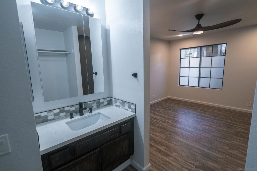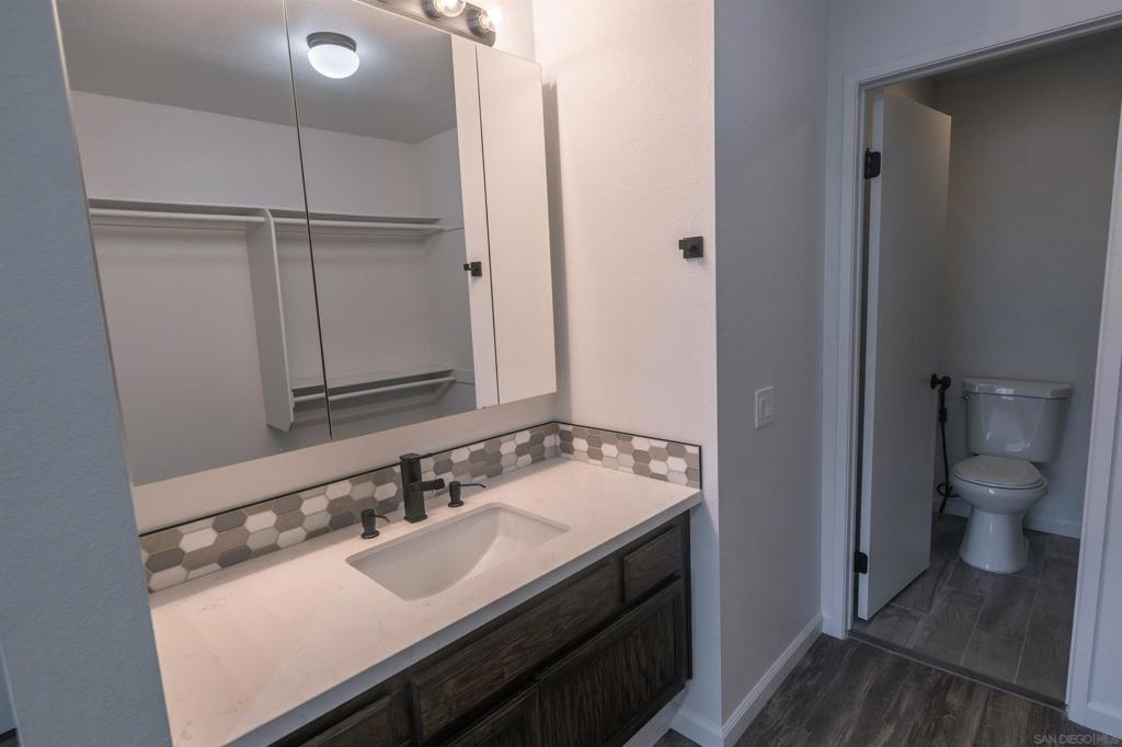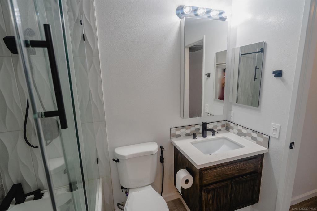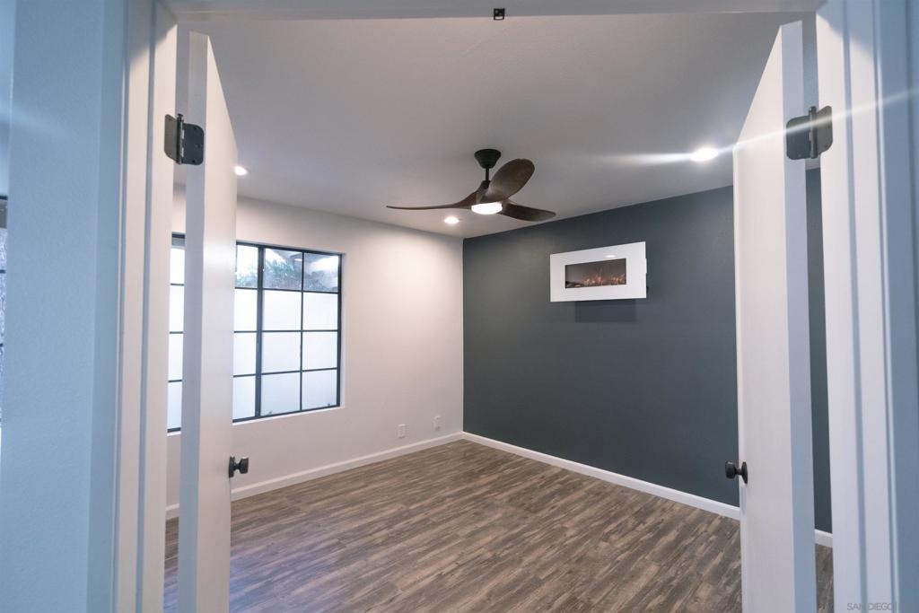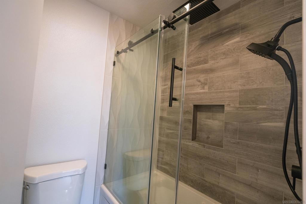 Experience a delightful mix of contemporary and upscale living in this renovated two-bedroom, two-bathroom condominium at Canyon Park Villas. No detail has been overlooked in this lavish home, which boasts luxurious amenities such as a smart NEST thermostat, laminate floors, smart door lock, adjustable light switches, three electric fireplaces, a smart refrigerator, rain shower heads, two whirlpool bathtubs, black gas range and microwave. This first-floor corner unit comes with a spacious patio with Washer / Dryer and two assigned parking spaces, as well as ample guest parking. The community includes a pool and spa, and the Lopez Ridge Park is just a short walk away.