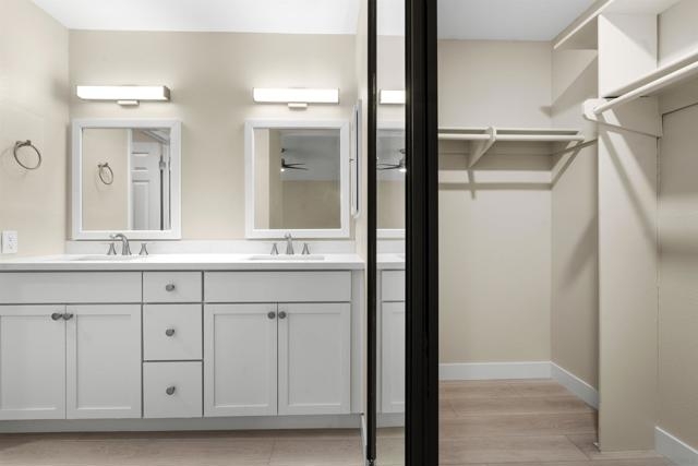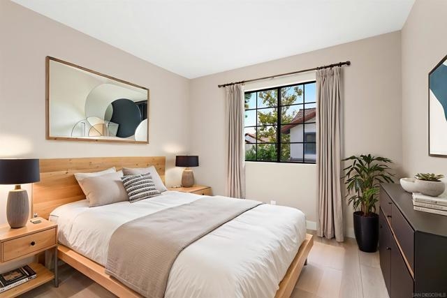 This beautifully remodeled, turnkey tri-level townhome offers every attention to detail in a highly desirable greenbelt setting within the coveted Mariposa community in Del Cerro. Spacious open floor plan at approximately 1,950 sq ft, with vaulted ceilings, fireplace, a stunning new kitchen, new flooring, cabinetry and baths. Lovely, private covered patio overlooking the beautifully maintained greenbelt and open spaces. The primary suite offers a walk-in closet, double vanity, and elegant en-suite bath. Additional highlights include direct access, spacious two-car garage into a versatile bonus space, perfect as a mudroom, storage area, or dedicated laundry room. The Mariposa community features a lovely pool and spa in garden setting with low HOA fees and a prime Del Cerro location near Mission Trails Park. A truly exceptional, immaculate home blending comfort, style, and convenience. Please note: Images 25 through 32 are VIRTUALLY STAGED photos.