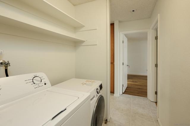 This desirable 1,075 square feet, 2-bedroom 2-bath condo with a rare backyard is a ground-level gem that lives like a single-family home. The unit is in the Pines of La Jolla, a gated community in the heart of UTC, mere minutes from UC San Diego and La Jolla's renowned beaches. Inside, you will find two large bedrooms, a stylish kitchen, two modernized bathrooms, and convenient in-unit laundry. One bedroom features an en-suite bathroom and dual closets, offering ample storage and privacy. The generous living area opens seamlessly to a large backyard, ideal for entertaining, gardening, working, or enjoying meals outdoors in the Southern California sunshine. The condo comes with a generous number of four dedicated parking spaces - three covered garage spaces and one uncovered space. Positioned adjacent to the community pool, this home enjoys one of the most desirable locations within the complex. Immediately outside the complex is a bus stop for the trolley which gives easy access to UCSD, making it an ideal home for students, faculty, or anyone seeking a convenient commute. UCSD, Doyle Park Recreation Center, Vons, Whole Foods, Trader Joe’s, Westfield UTC mall, La Jolla Downtown, and La Jolla Cove are all minutes away. A home warranty is fully paid and active through 2029, offering peace of mind for years to come. Whether you’re a first-time buyer, investor, or looking for a low-maintenance lifestyle in a prime coastal location, this condo delivers the perfect blend of space, comfort and luxury.