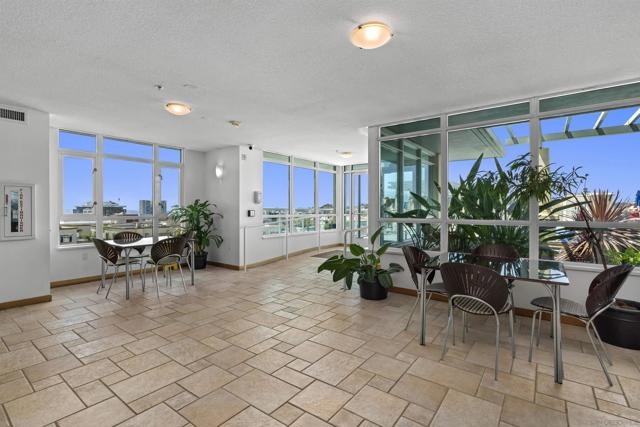 Experience serene treetop views from this west-facing, end-unit residence at Discovery, complete with a private balcony overlooking the peaceful side of the community. With custom paint tones throughout, the upgraded chef’s kitchen is a true centerpiece, showcasing new Calacatta quartz countertops, top of the line GE Profile stainless appliances, painted timeless shaker cabinetry and a deep, single-basin stainless sink combines sleek style with practical ease for cleanup, and recessed lighting for a sleek, modern look. The open-concept living area is highlighted by luxury vinyl plank flooring, expansive windows that flood the space with natural light, a charming window bench seat with built-in storage, track lighting, remote shades, and a cozy fireplace. The spacious primary suite is thoughtfully designed with custom California Closets, a built-in dresser, and remote shades for effortless privacy. The beautifully remodeled guest bath features a walk-in shower and designer finishes. Additional conveniences include one secure parking space near the elevator and a dedicated storage unit. All this in charming, tree-lined Cortez Hill—Downtown San Diego’s hidden gem, celebrated for its tranquil ambiance and sophisticated urban lifestyle. Perched atop Cortez Hill, Discovery offers resort-style living in one of Downtown San Diego’s most charming and established neighborhoods. Residents enjoy secure underground parking, 24-hour concierge service, an elegant lobby, and thoughtfully designed shared spaces including the lush 2nd-floor Fern Grotto Garden and a stylish social lounge. The business center is equipped with commercial-grade office tools, and the 10th-floor rooftop deck features a heated lap pool, cabanas, spa, BBQ grills, and panoramic city views. A top-tier fitness center includes a sauna and steam room for full wellness access. Just steps away are local favorites like Tweet Street Park, Hob Coffee, and Soleluna Café, with Little Italy and Balboa Park within walking distance. Plus, enjoy quick freeway access to I-5 and Hwy 163 from this peaceful urban retreat.