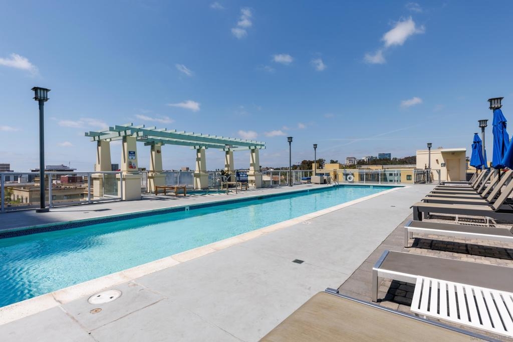 Bright, Quiet, and Updated—Refined Downtown Living at Discovery Welcome to Unit 701 at Discovery in Cortez Hill, a beautifully refreshed corner residence offering natural light, interior-facing tranquility, and modern style. Situated on the quiet side of the building, this 2-bedroom, 2-bath home enjoys peaceful courtyard and soft city views through floor-to-ceiling windows and French doors that open to a private balcony. Recent upgrades include brand new luxury vinyl plank flooring, fresh designer paint, and newly painted cabinetry that gives the space a clean, contemporary feel. The open-concept living and dining area features a cozy fireplace and a built-in mini wine fridge, while the functional layout includes an in-unit washer/dryer, assigned parking, and a separate storage unit. The spacious primary suite includes a generous walk-in closet with custom built-ins, and both bedrooms are comfortably sized with great natural light. Discovery offers full-service amenities with a recently remodeled rooftop pool and spa, upgraded fitness center with new equipment, stylish lounges, firepits, and 24-hour concierge and security. Residents also benefit from a professionally managed, well-established HOA and a yearly renewable guest street parking permit from the City of San Diego. Located in the peaceful, tree-lined neighborhood of Cortez Hill—close to Little Italy, Balboa Park, and downtown hot spots—this move-in-ready home offers the best of urban living with a sense of calm. Welcome to Discovery at Cortez Hill, where modern comfort meets refined downtown living in this beautifully updated 2-bedroom, 2-bath corner residence. Located on the 7th floor, Unit 701 features brand new luxury vinyl plank flooring, fresh designer paint, and a light-filled layout that offers both style and functionality. Enjoy floor-to-ceiling windows, a private balcony with peaceful city and courtyard views, and a split-bedroom design ideal for privacy or remote work. The spacious primary suite includes a generous walk-in closet with custom built-in shelving, perfect for streamlined storage. Discovery is a full-service luxury building offering a recently renovated amenities floor, including a resort-style rooftop pool and spa, upgraded fitness center with new equipment, stylish lounge areas, and firepits for relaxed evening gatherings. With 24-hour concierge, security, and secure parking, every detail is designed for convenience and peace of mind. Located in the charming, tree-lined neighborhood of Cortez Hill, you’re just minutes to Little Italy, Balboa Park, and the vibrant energy of downtown. Move-in ready with modern upgrades—discover elevated urban living at Discovery.