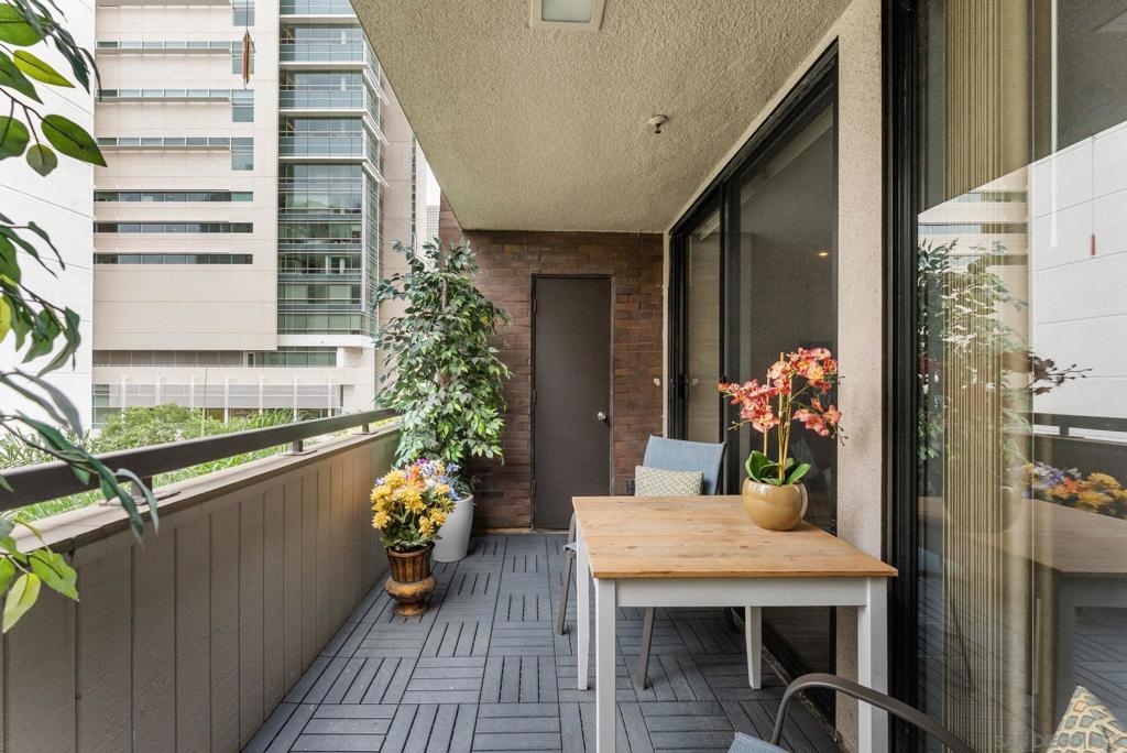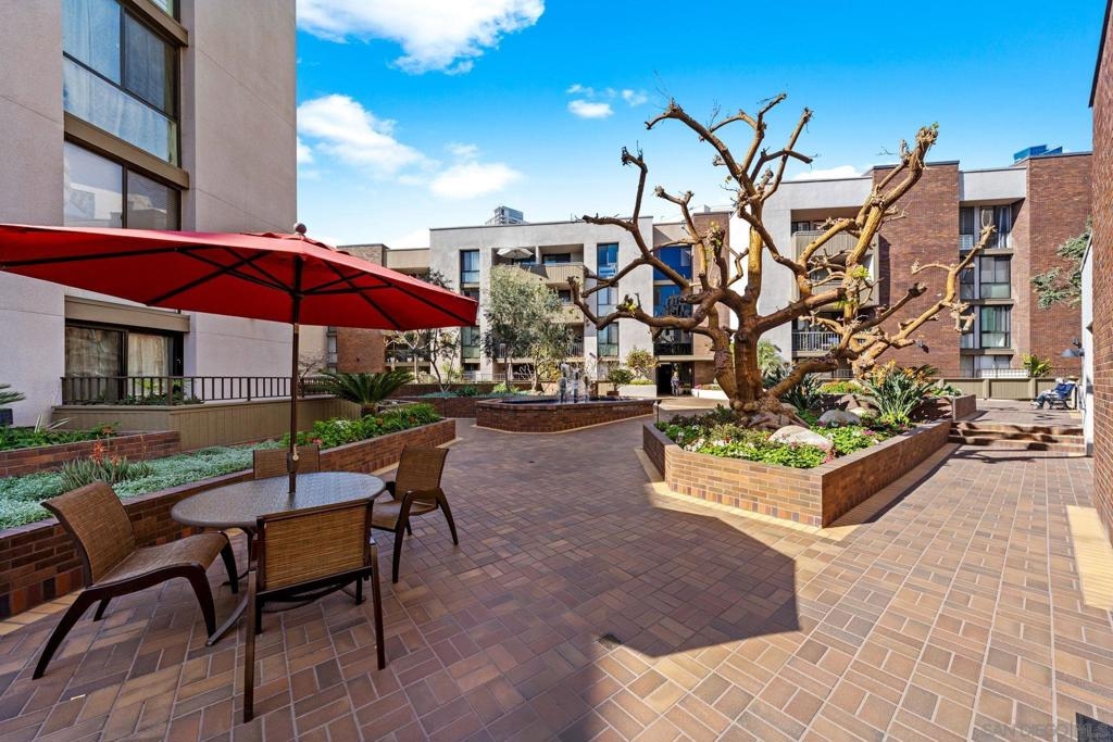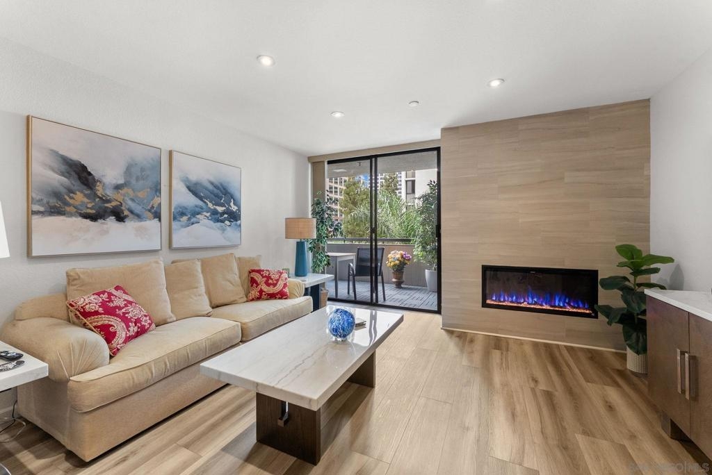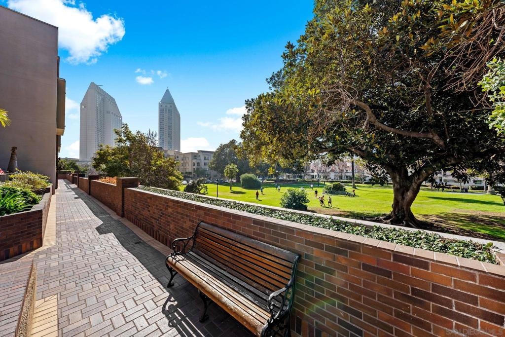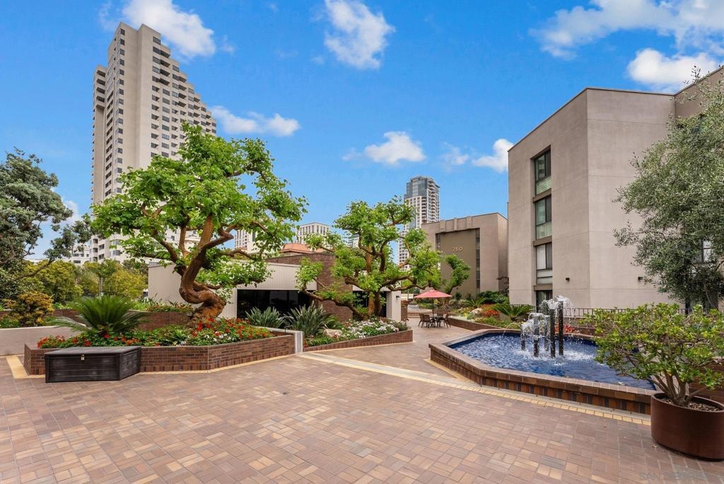 Welcome to your top floor urban sanctuary at Marina Park—an elegantly remodeled condo located in one of Downtown San Diego’s most desirable communities. Nestled in the quiet yet vibrant Marina District, this spacious 2-bedroom, 2-bath residence offers upscale living with all the modern comforts and walkable convenience of city life. Step inside to discover a light-filled open floor plan, thoughtfully designed with high-end finishes throughout. The remodeled kitchen boasts quartz countertops, sleek cabinetry, stainless steel appliances, and a breakfast bar perfect for casual dining or entertaining. The spacious living and dining areas flow seamlessly to a private balcony—your personal perch to unwind and enjoy city views. Retreat to a generously sized primary suite complete with a large walk-in closet and a spa-inspired en-suite bathroom featuring a modern vanity and beautiful tile work. Enjoy in-unit laundry and central A/C complete the package. Marina Park is a full-service community offering resort-style amenities including 24-hour security, two swimming pools, spa, fitness center, lush courtyards, and guest parking. Enjoy the best of Downtown—just steps from Seaport Village, the waterfront, Gaslamp Quarter, Little Italy, and PETCO Park. This turnkey home blends sophistication and location, making it ideal for full-time residents, second-home seekers, or savvy investors. Don’t miss your opportunity to live in one of Downtown’s most established and well-kept communities.
