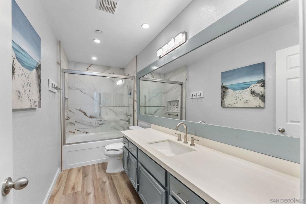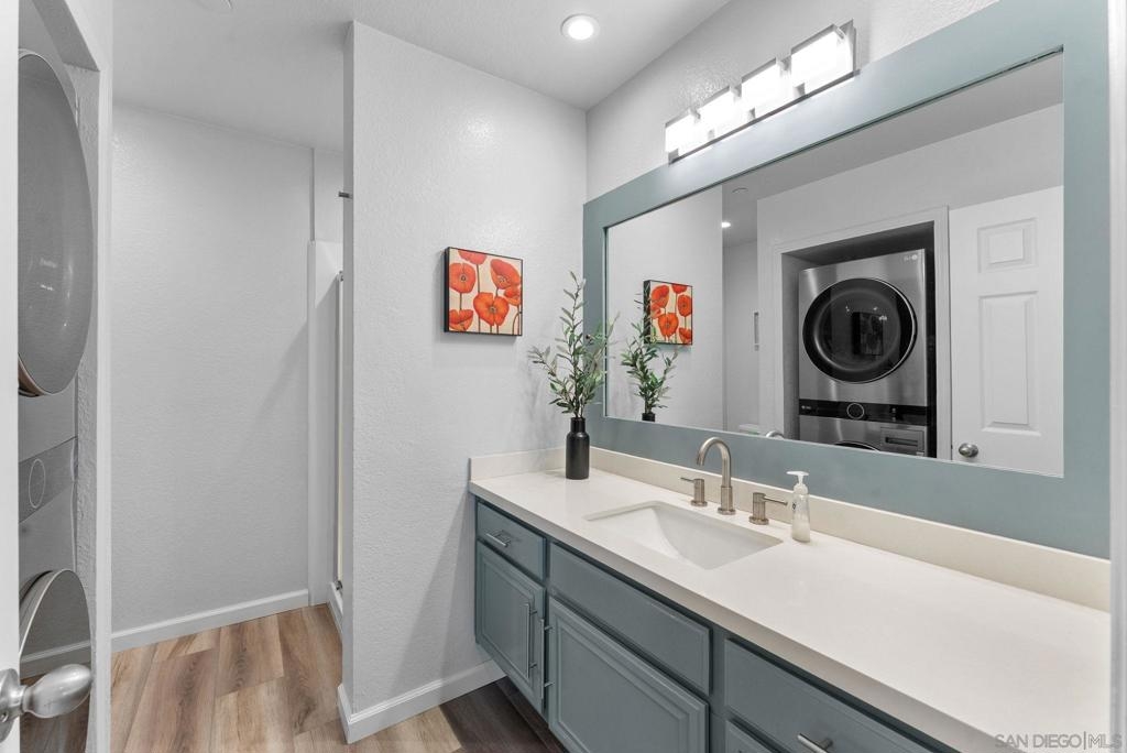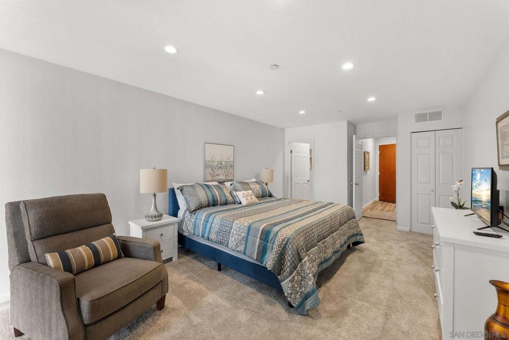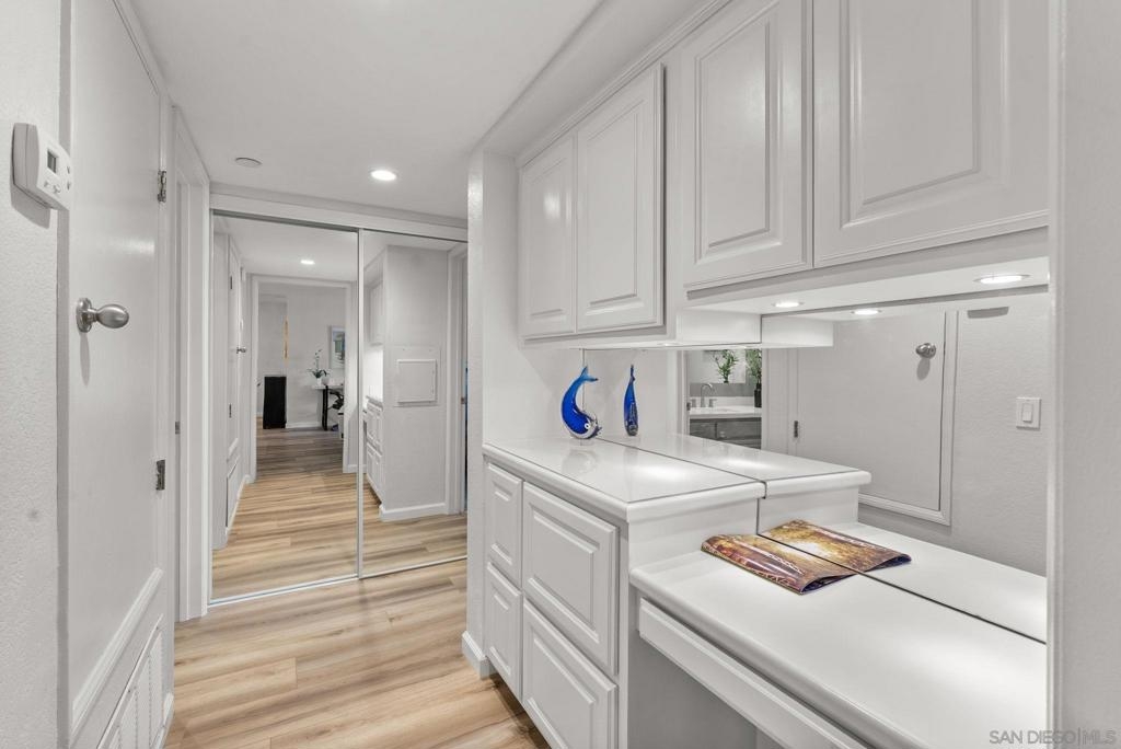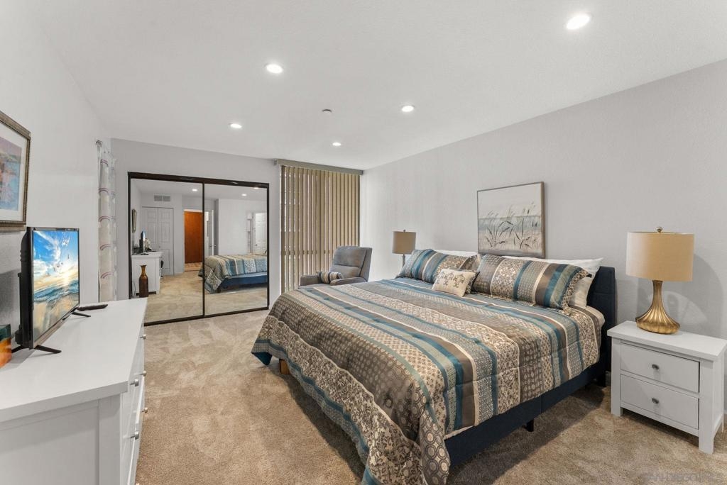 Welcome to your top floor urban sanctuary at Marina Park—an elegantly remodeled condo located in one of Downtown San Diego’s most desirable communities. Nestled in the quiet yet vibrant Marina District, this spacious 2-bedroom, 2-bath residence offers upscale living with all the modern comforts and walkable convenience of city life. Step inside to discover a light-filled open floor plan, thoughtfully designed with high-end finishes throughout. The remodeled kitchen boasts quartz countertops, sleek cabinetry, stainless steel appliances, and a breakfast bar perfect for casual dining or entertaining. The spacious living and dining areas flow seamlessly to a private balcony—your personal perch to unwind and enjoy city views. Retreat to a generously sized primary suite complete with a large walk-in closet and a spa-inspired en-suite bathroom featuring a modern vanity and beautiful tile work. Enjoy in-unit laundry and central A/C complete the package. Marina Park is a full-service community offering resort-style amenities including 24-hour security, two swimming pools, spa, fitness center, lush courtyards, and guest parking. Enjoy the best of Downtown—just steps from Seaport Village, the waterfront, Gaslamp Quarter, Little Italy, and PETCO Park. This turnkey home blends sophistication and location, making it ideal for full-time residents, second-home seekers, or savvy investors. Don’t miss your opportunity to live in one of Downtown’s most established and well-kept communities.