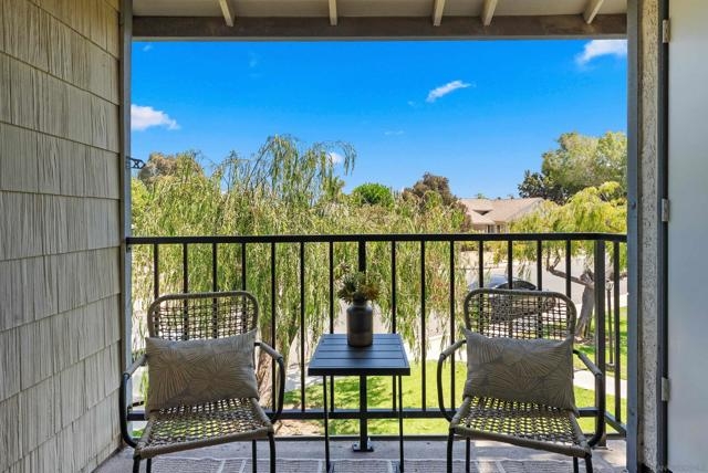 8595 Summerdale Rd #170 ~ Where comfort & updates combine w/ location & lifestyle to create the perfect place to call home. Amazing opportunity to own this bright & beautifully updated 1BR/1BA upstairs corner unit w/ no one above you & peaceful views of the surrounding neighborhood, trees & hills. Located on the outer edge of the complex, this home offers rare privacy, added convenience & easy access to extra street & guest parking. Inside you’ll love the freshly painted interior w/ newly installed LVP flooring throughout, recessed LED lighting, updated fixtures, modern ceiling fan & plantation shutters. The kitchen features woodgrain cabinets, granite counters, & new SS appliances including a smart WiFi-enabled range w/ multiple cooking modes, plus a new DW & microwave. The living area opens to a large covered SE-facing balcony that feels like an extended outdoor living rm. Imagine waking up w/ the morning sun, sipping coffee as light filters through the trees, unwinding after a long day, or just hanging out enjoying the breeze & backdrop of mature trees & neighborhood. Practical touches include a laundry closet & extra storage tucked off the balcony, plus a newer HVAC keeping life simple & comfortable year-round. Enjoy unbeatable access to shopping, eateries, groceries, plus the Mira Mesa Community Park & Rec Center, currently undergoing a major revitalization to expand sports fields, aquatics & community spaces. Easy fwy access, proximity to Miramar & nearby tech campuses round out the connected lifestyle. Come see why this home feels just right. WOW, Welcome Home!