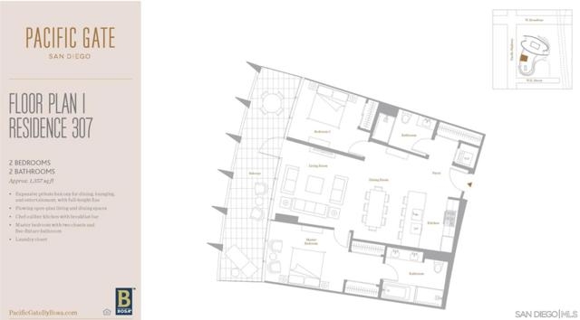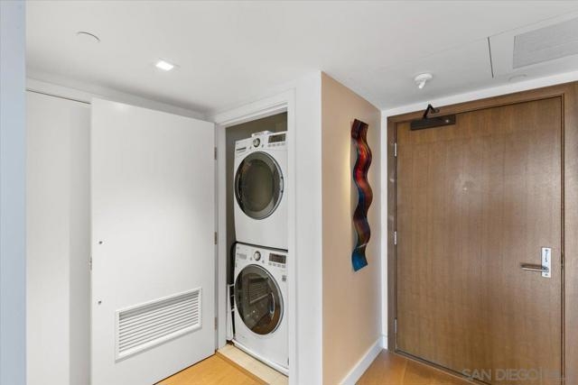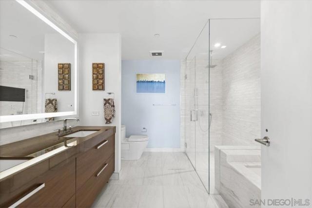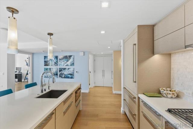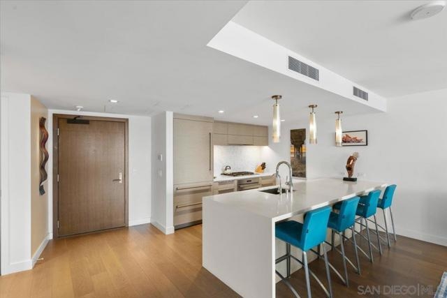 Experience luxury coastal living in this stunning west facing residence with sunset and Bay views. Featuring one of the largest private balconies in the entire building, providing an expansive outdoor retreat rarely available in high-rise living. The beautiful gourmet kitchen features touch-opening cabinetry, Sub-Zero, Wolf and Miele appliances, wine fridge and Pentair water filtration system. Located along a private corridor of the building, this third-floor unit provides convenient access to the Business Center, Conference Room and Screening Room, perfect for work-from-home residents. Control the built-in sound system, automated window shades, A/C, and lighting effortlessly through a mobile app in this smart home. Master suite comes equipped with duo custom designed valet closets, leading to a spa-inspired bathroom featuring heated floors, walk-in shower, deep soaking tub and LED mirror with an integrated TV. Ample storage is found throughout the home along with an organized pantry and floating glass storage cabinet. Residents enjoy Pacific Gate’s world-class amenities, including: 24/7 concierge, doorman, and security. Private yacht, luxury car fleet, heated pool, spa, sauna, and steam room. Fitness center, outdoor BBQ grills, fire pit, and lounge areas, and community lounge available to host events. Unit includes 2 parking spots & storage unit in premiere P1 location. Situated in the heart of San Diego’s waterfront area with easy access to restaurants and parks. Unit 307 combines privacy, and resort-style living, perfect for full-time or seasonal residents.