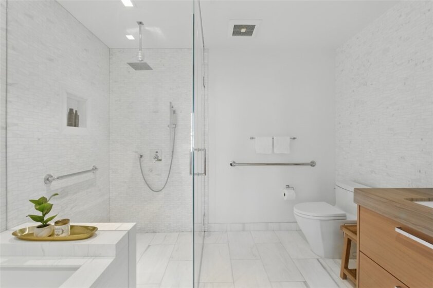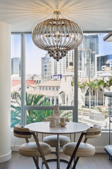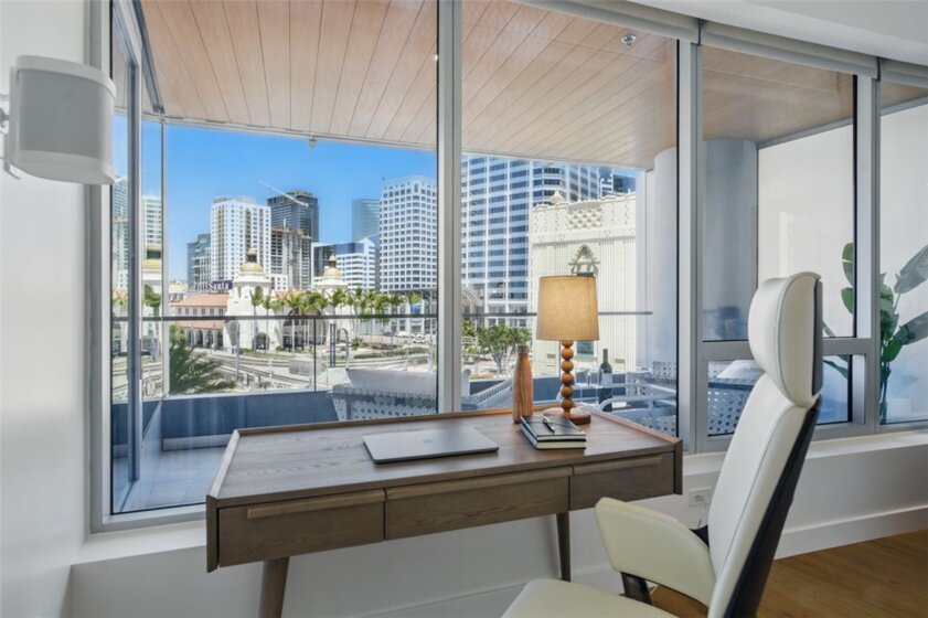 Discover refined coastal living at the Super Prime building Pacific Gate, the crown jewel of San Diego’s skyline. This beautifully designed residence is one of just 5 units on the 5th floor with an ‘05 unit number, meaning its layout and placement is equivalent to an ‘06 unit. This home features floor-to-ceiling windows that frame the stunning city views, luxury hardwood flooring, marble tile, designer lighting and an audio visual system with premium surround sound enhancing the ambiance for daily living and entertaining alike. The kitchen offers top-of-the-line appliances, Caesarstone countertops, motorized upper cabinets, and lower cabinet double drawers in matte walnut. Smart-home features including touch screen automated window treatments and lighting and intuitive climate control ensure effortless comfort throughout. The spacious primary suite offers sunny morning tree top views and is joined by a spa-inspired bathroom featuring heated floors, a walk-in shower, soaking tub, dual vanities, and an LED mirror with integrated TV along with a custom walk-in closet offering elevated storage. A generously sized and covered (shaded) private outdoor area extends directly from the main living space. This home also includes fantastic underground parking with two premium accessible corner parking spaces (not tandem!) and two! private storage lockers. Residents at Pacific Gate enjoy unparalleled amenities: 24-hour concierge service, a 45-foot yacht share, luxury car fleet, movie lounge, business center, doggy station, bike room, residents’ lounge with catering kitchen, a fully equipped fitness center featuring a sauna and steam room, and a resort-style pool terrace with cabanas and grilling stations just one floor below. Just moments from the RaDD District, Seaport Village, the Rady Shell, Little Italy, and some of San Diego’s best waterfront restaurants and cultural destinations. Convenience and Culture. Designed by Hirsch Bedner Associates and Kohn Pedersen Fox, Pacific Gate’s sculptural glass towers redefine the city skyline and deliver next-level waterfront living.